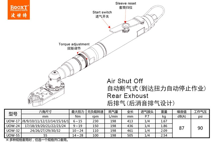 東莞市強勁五金工具有限公司提供臺灣BOOXT波世特品牌氣動工具,氣動開口定扭扳手UOW-17廠家直銷,首件享特價。咨詢熱線:4008301980