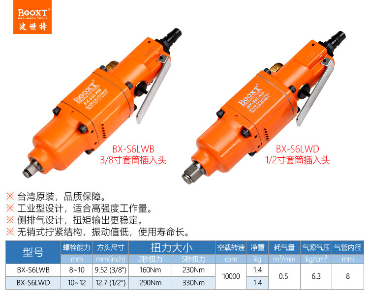 東莞市強(qiáng)勁五金工具有限公司提供臺(tái)灣BOOXT波世特品牌氣動(dòng)工具,直柄氣動(dòng)扳手BX-S6LWB廠家直銷,首件享特價(jià)。咨詢熱線:4008301980