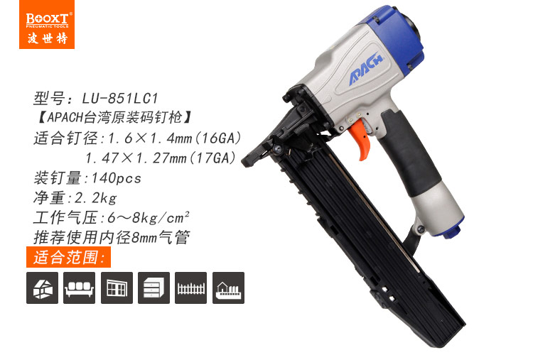 東莞市強(qiáng)勁五金工具有限公司提供臺灣BOOXT波世特品牌氣動工具,輕型氣動碼釘槍LU-851LC1廠家直銷,首件享特價。咨詢熱線:4008301980