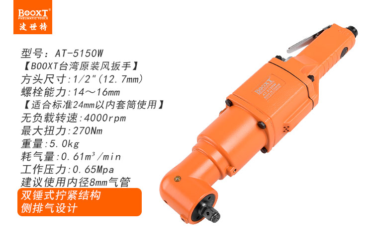 東莞市強勁五金工具有限公司提供臺灣BOOXT波世特品牌氣動工具,直角氣動扳手AT-5150W廠家直銷,首件享特價。咨詢熱線:4008301980